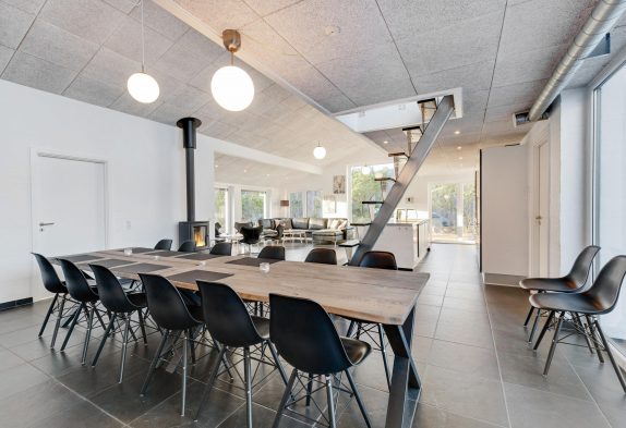 Samtidig sørger den knitrende brændeovn for den dér helt særlige feriestemning, der gør det ekstra hyggeligt at være fælles om kreeringen af en lækker 3-retters feriemenu, mens man i ny og næ kaster et blik ud på de grønne omgivelser i haven.