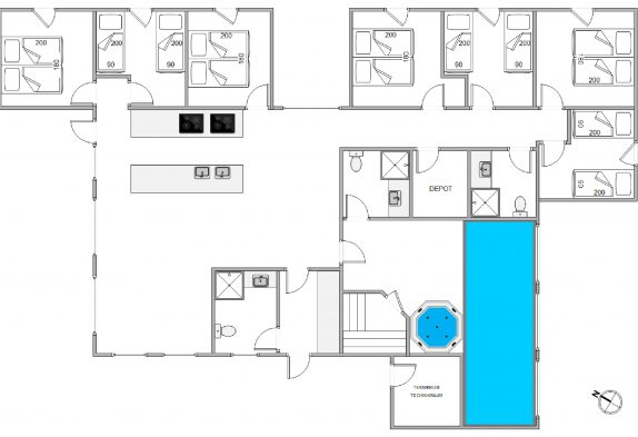 Swimmingpool, spabad, sauna og bordfodbold
