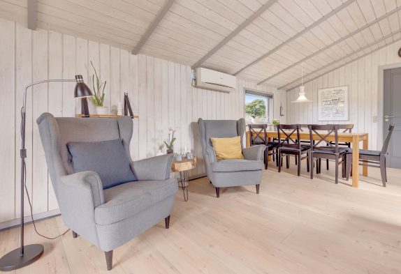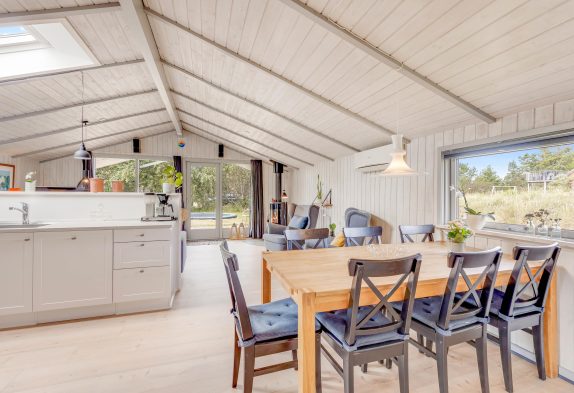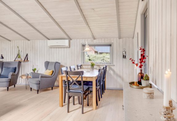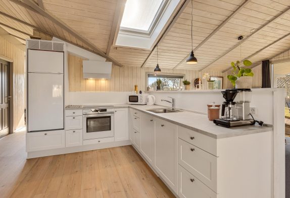 Så snart I træder inden for døren, kan I mærke den klassiske sommerhusstemning brede sig. Sommerhuset oser af charme med sine synlige loftsbjælker og lyse træfarver, og den detaljerige indretning skaber en hjemlig atmosfære. Her er lagt vægt på, at I skal have en afslappende ferie i hyggelige omgivelser.