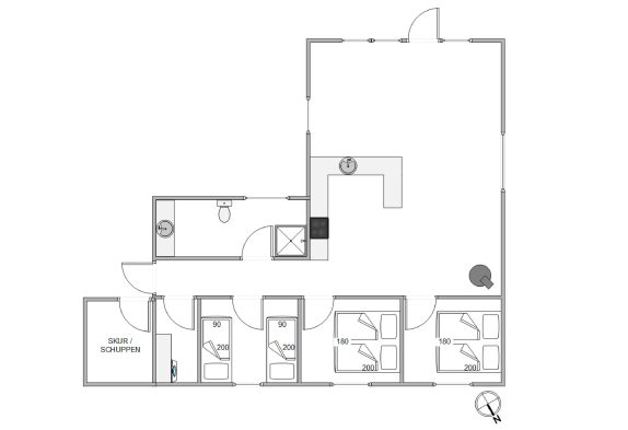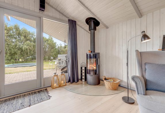I stuen står sommerhusets brændeovn, som altid er en ægte stemningsspreder. Badeværelset er udstyret med gulvvarme, og der er både opvaskemaskine, vaskemaskine og tørretumbler.