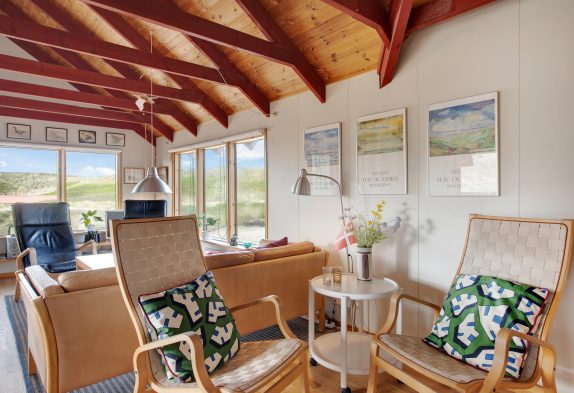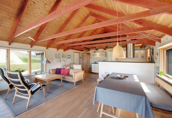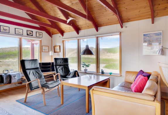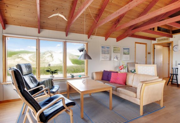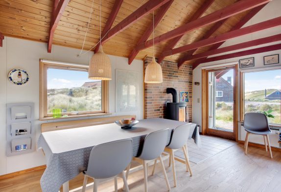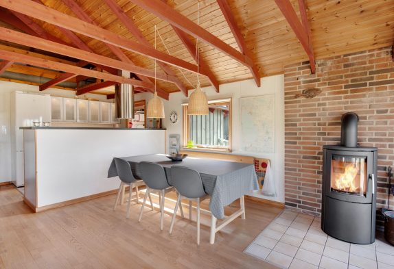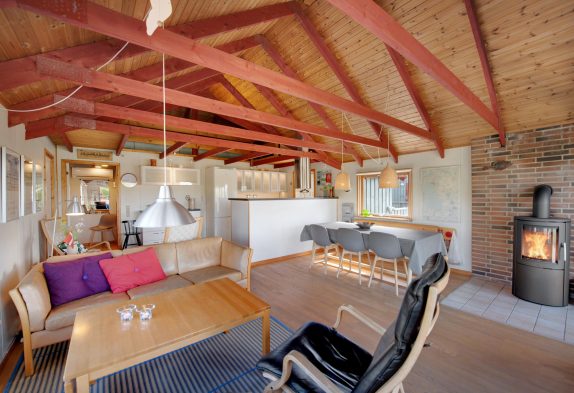 Stuen ligger i åben forbindelse til samtalekøkkenet. Sammen med husets brændeovn skaber det de perfekte rammer for en hyggelig ferie i familiens samvær. Knitren i brændeovnen er perfekt lige meget om I spiller brætspil eller ser jeres yndlingsfilm og serier.
