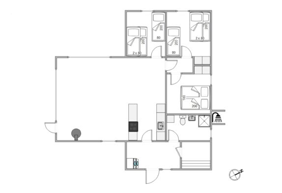 Grundet husets fantastiske beliggenhed er der garanti for bølgebrus i baggrunden. På husets lukkede terrasse kan I nyde morgenmaden under åben himmel og langsomt vågne op til endnu en god dag i det jyske. Også en fordel er, at terrassen på den anden side er delvist overdækket og er perfekt til en mere blæsende dag. Et gyngestativ og sandkasse er højdepunktet for børnene! Desuden er der monteret en udebruser ved feriehuset, hvor I efter en dejlig tur ved stranden igen kan skylle sandet af kroppen. Udebruseren kan bruges fra april måned til november måned.