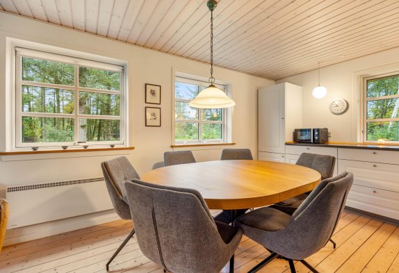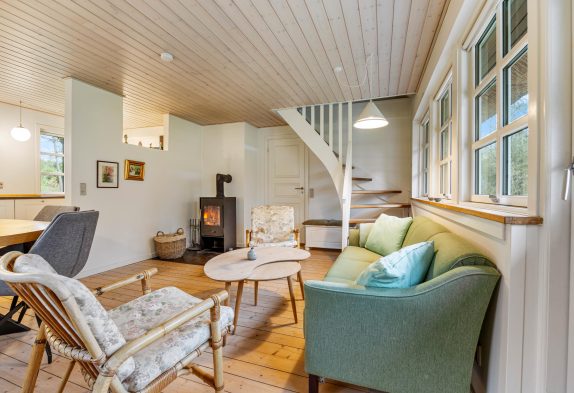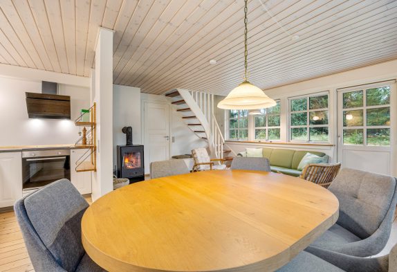 Brændeovnen er klart feriehusets samlingspunkt. Den spreder varme og hygge rundt i hele huset. Her kan I sidde og nyde flammerne med et godt glas rødvin om aftenen, mens I lader op til endnu en skøn feriedag.