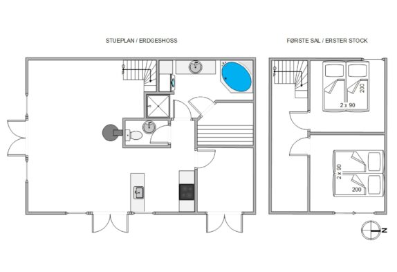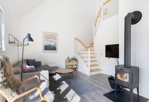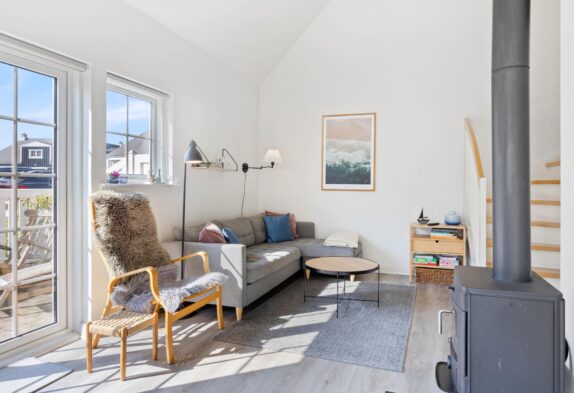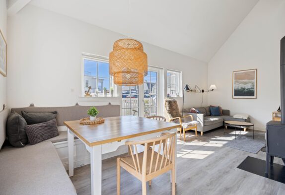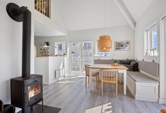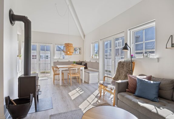 I 2020 blev dette hyggelige feriehus på 90 kvadratmeter renoveret og moderniseret. Lejligheden er fordelt over to etager. Samtalekøkkenet, stuen med brændeovn, badeværelset med bruser, sauna og spa samt gæstetoilet finder I på stueetagen. De to soveværelser, hver med en dobbeltseng, finder I på lejlighedens øverste etage.