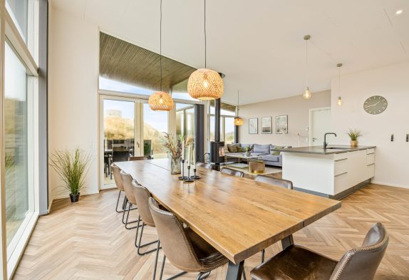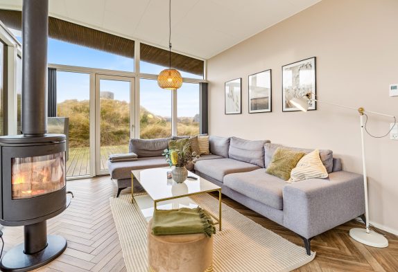 Feriehuset er nøje indrettet med kvalitetsbevidste- og stilfulde møbler. I hele huset går det pæne silbenpaketgulv igen, og det er med til at give indretning et meget godt twist, og samtidig give jer den hjemlige følelse. Her er samtidig også højt til loftet, hvilket giver rummene en dejlig fornemmelse.