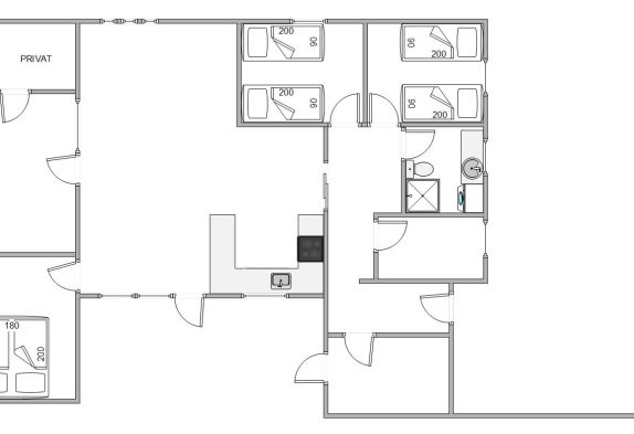 Feriehuset er indrettet til 6 personer, fordelt på 3 soverum, samt et mindre værelse med fladskærm med chromecast og dvd-afspiller. Der er ikke tv-kanaler på dette TV og værelset er ideelt til legeværelse for børn. Det flotte og praktiske badeværelse er naturligvis med gulvvarme – og desuden en vaskemaskine, hvilket nok især småbørnsfamilierne vil sætte pris på. Indgangen byder på meget plads til overtøj og barnevogne.