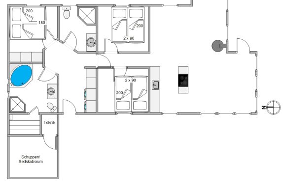 Med 2 flotte og praktisk indrettede badeværelser er huset velegnet til den store familie – men der er også plads til 2 familier, der gerne vil nyde en ferie sammen med masser af hygge og sjove oplevelser.