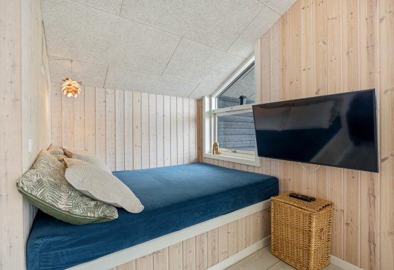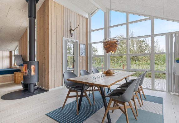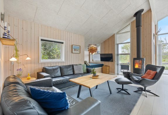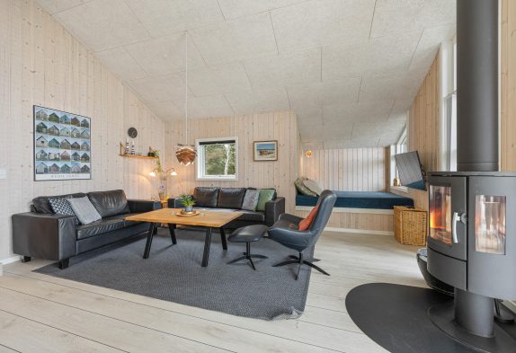 På de køligere dage kan I føle jer helt tæt på naturen, også imens I læser en god bog – eller hyggesnakker i sofaen foran den knitrende ild i brændeovnen. Alkoven i stuen inviterer måske til hyggetid for de mindste, samtidig med at de er tæt på familien.