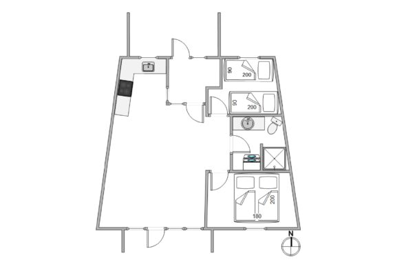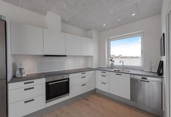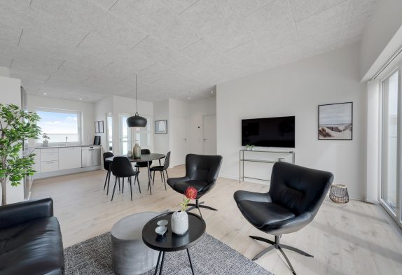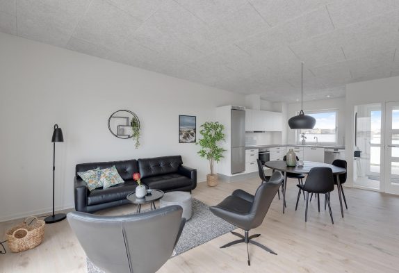 Ferielejligheden består af en stor, lækker stue, som er stilfuldt møbleret og ligger i forbindelse med et moderne køkken med alle de nødvendige faciliteter. Her er masser af plads til fire mennesker, og den nyopførte lejlighed sikrer et godt indemiljø. Desuden opvarmes lejligheden af et energivenligt, varmepumpesystem, der sammen med den gode isolering af lejligheden sørger for et lavere elforbrug.