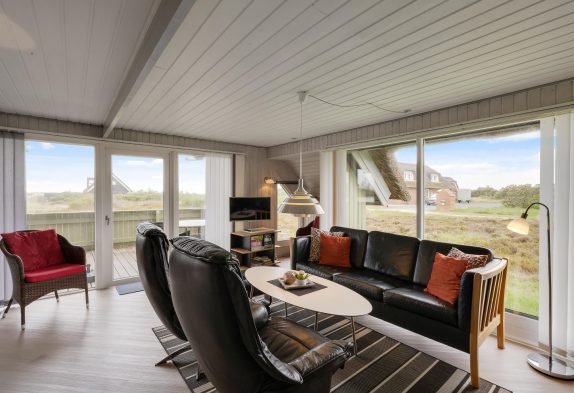 Fra stuen kommer I ud på feriehusets afskærmede og delvist overdækkede terrasse. Havemøbler, liggestole og grill står til rådighed, så I kan nyde solskinsdagene og slutte dagen af med en hyggelig grillaften, mens solen langsomt forsvinder ned i horisonten.