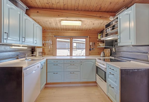 Sommerhusets rustik-romantiske indretningen komplementerer resten af huset, her er der kælet for detaljerne. Komforten er der naturligvis også tænkt på. Med både opvaskemaskine, vaskemaskine og tørretumbler lige ved hånden, er der ekstra tid til hygge med hele familien foran brændeovnen, eller ved spisebordet med nogle gode brætspil.