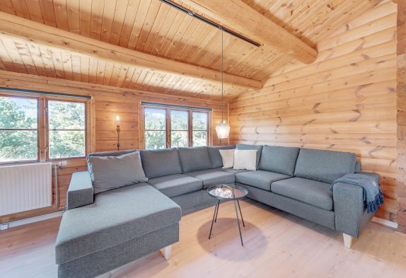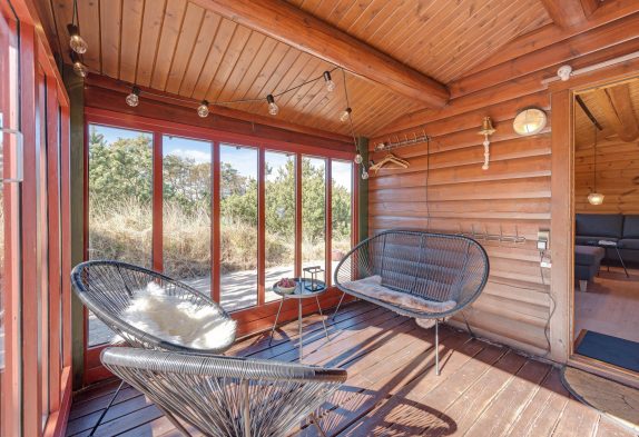Feriehuset på Marehalmen 12 udstråler en særlig hygge og varme både ude- og indefra. Især på de varme, solrige dage kan man dufte den helt særlige træduft, man kun finder ved denne slags bjælkehuse.
