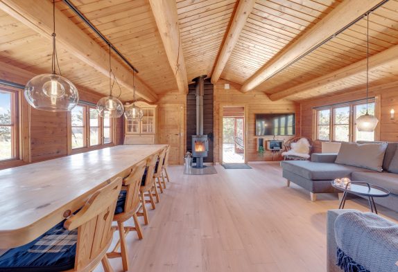 Rustik og hyggelig atmosfære med brændeovn på Marehalmen 12