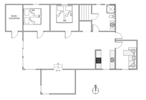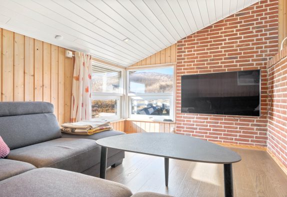 Centrum i sommerhuset er uden tvivl opholdsrummet med gulvvarme, hvor I både finder den veludrustede køkkenafdeling med bl.a. opvaskemaskine, spiseafdelingen, samt nedgang til TV-stuen med sofahjørne og plads til familiehygge med kortspil eller andet.