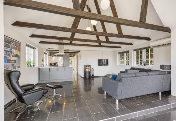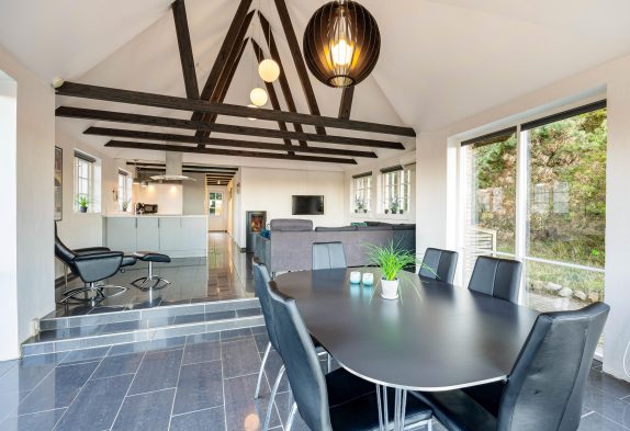 Slap af i den hyggelige stueafdeling med en god bog foran den knitrende ild i brændeovnen, eller hyg jer med familiespil ved spisebordet med den flotte udsigt.