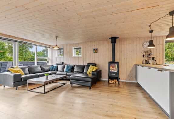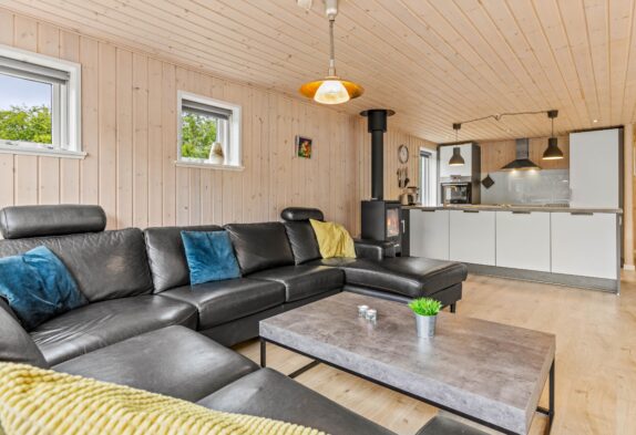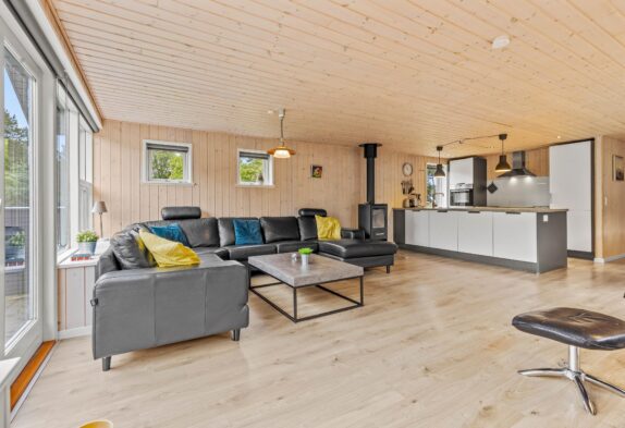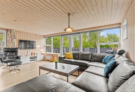 Det er ikke kun indvendigt, sommerhuset er spækket med fede feriehighlights. I får også et helt fantastisk udendørsareal. En stor, lukket terrasse – med markise! – sørger for, at I roligt kan lade både børnene og hundene lege, mens I læser en god bog i solen. På terrassen befinder der sig desuden et stykke græsplæne og et legeområde til børnene.