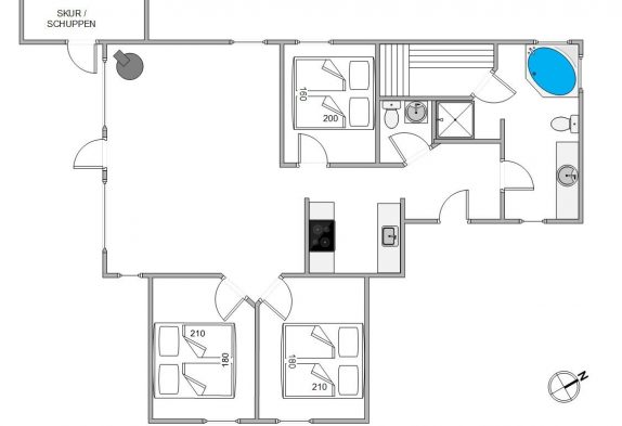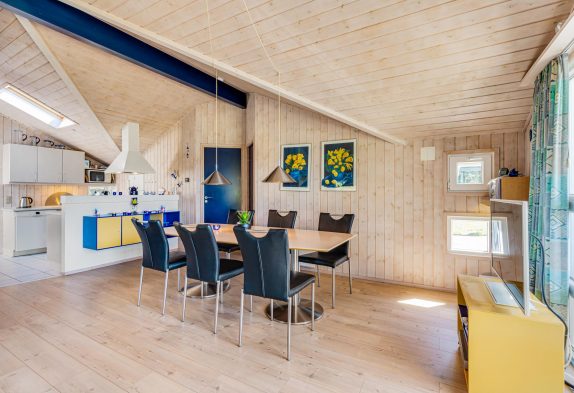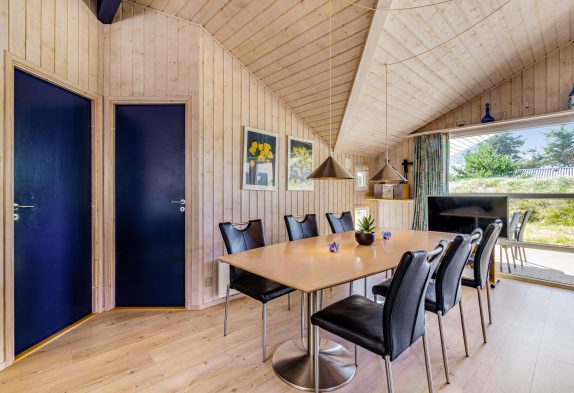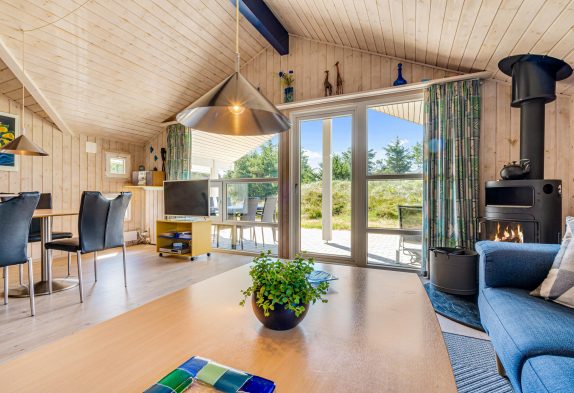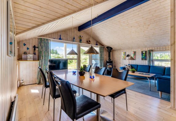 De 3 soverum er alle indrettet med store dobbeltsenge og særligt rart er, at feriehuset ikke blot har et stort lækkert badeværelse, men også er indrettet med et gæste-wc. Med både vaskemaskine, tørretumbler og opvaskemaskine er alle praktiske detaljer på plads for et vellykket ferieophold. Sommerhuset opvarmes med en energibesparende luft-til-luft-varmepumpe, men når der rigtigt skal hygges indenfor med familiespil og kakao, så er det tid til at tænde op i brændeovnen.