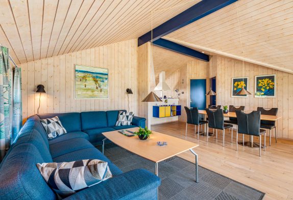 Velkommen i et velholdt sommerhus, som er praktisk og lækkert indrettet med et frisk pift af blå. Huset er lyst og venligt og indeholder alt det, der hører til en afslapningsferie med et strejf af luksus – her er der nemlig både sauna og spa!