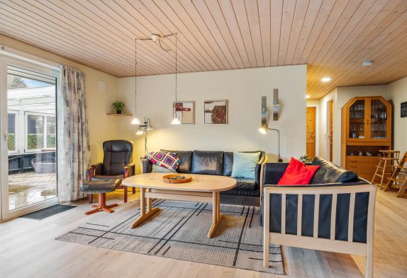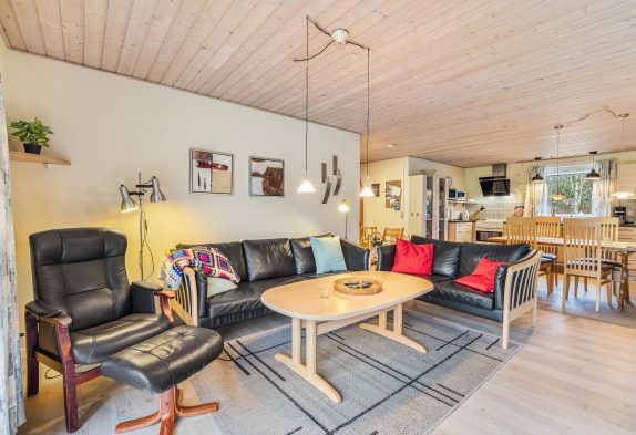 Dette sommerhus byder på en lys og indbydende atmosfære med fokus på hjemlig hygge. Med en åben planløsning, hvor køkken og stue er forenet, kan hele familien nyde kvalitetstid sammen.