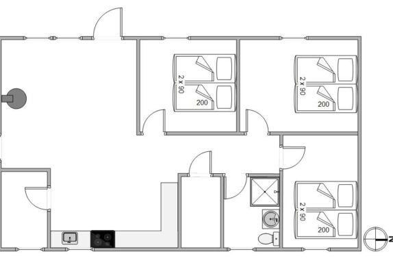 Renoveringer i 2023 har bragt friske farver til væggene og nyt liv til gulvene i både stue og køkken. Sommerhuset har tre soveværelser, hver indrettet med en dobbeltseng, samt et badeværelse med behagelig gulvvarme for ekstra komfort. Der er desuden et lille rum til diverse opbevaring.