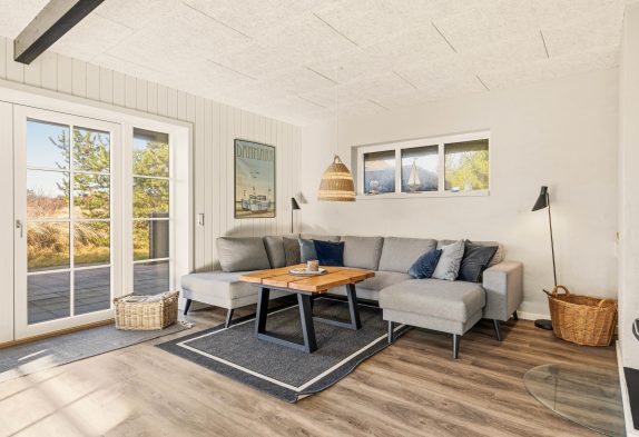 Det røde murstenshus med stråtag, der har gennemgået en stor renovering i 2021 passer så fint ind i landskabet med lyng og fyrretræer. Her er stemningen lagt til en hyggelig og afslappende ferie.