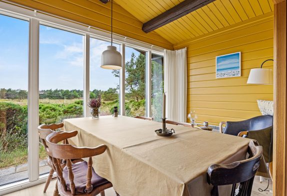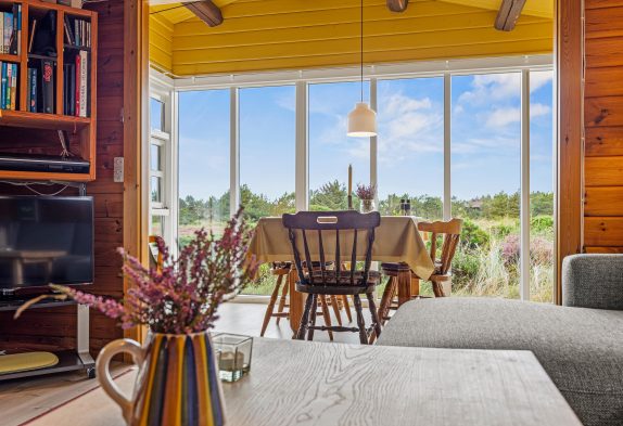 Sidst, men ikke mindst, har sommerhuset en udestue i forlængelse af opholdsrummet, hvorfra der er en fantastisk udsigt til det fredede hedeområde gennem de store vinduer.