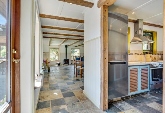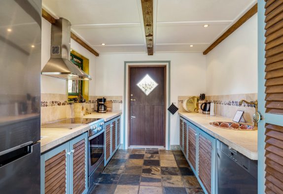 Det 142 m2 store hus er indrettet i smagfuld sydeuropæisk stil, bl.a. med synlige loftsbjælker og gulv af naturskiffer (gulvvarme) i køkken, stue og gang. Værelserne har fyrretræsgulv lagt som skibsplanker. Der er god af skabsplads til alle gæster.