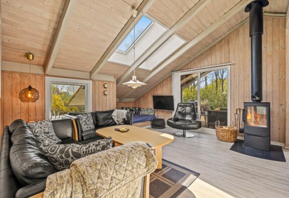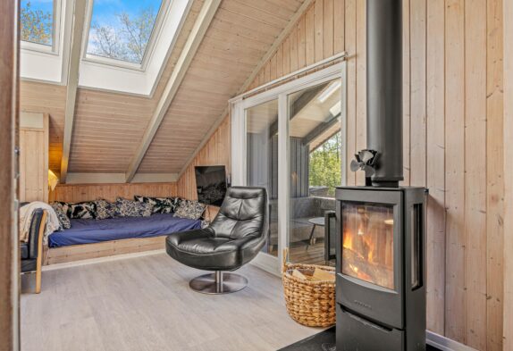 Badeværelset er udstyret med moderne faciliteter, herunder gulvvarme, som sikrer en varm og behagelig start på dagen. Køkkenet byder på en opvaskemaskine, hvilket gør det nemt at holde styr på oprydningen efter måltiderne. Der er også en brændeovn i stuen, som skaber en varm og indbydende atmosfære, perfekt til afslapning efter en dag med udendørs aktiviteter. Praktiske faciliteter som vaskemaskine og tørretumbler gør det nemt at håndtere tøjvask, så I kan bruge tiden på at nyde jeres ferie.