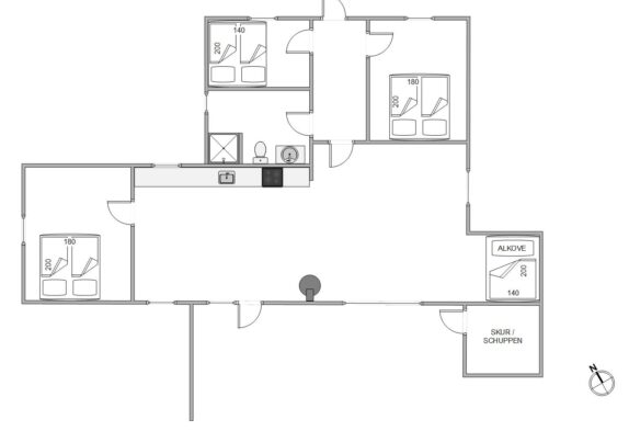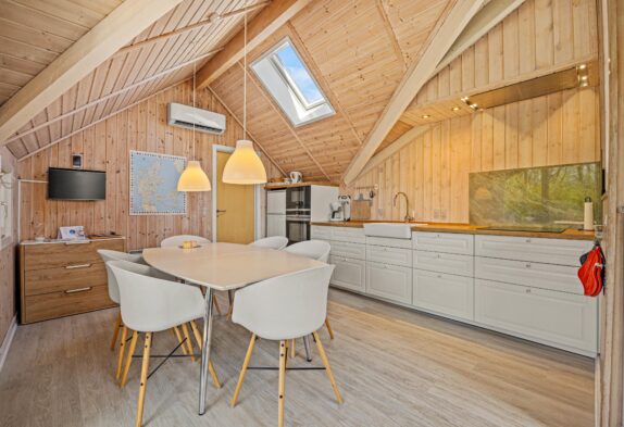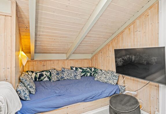 Indearealet i sommerhuset i Bork Havn er designet til at kombinere komfort med funktionalitet, og sikrer en behagelig oplevelse for alle gæster. De 3 soverum har tilsammen 6 sovepladser, som giver rigelig plads til hele familien eller en gruppe venner. Derudover findes der en ekstra alkove, der tilbyder fleksibilitet til en ekstra gæst eller som et hyggeligt læsehjørne.