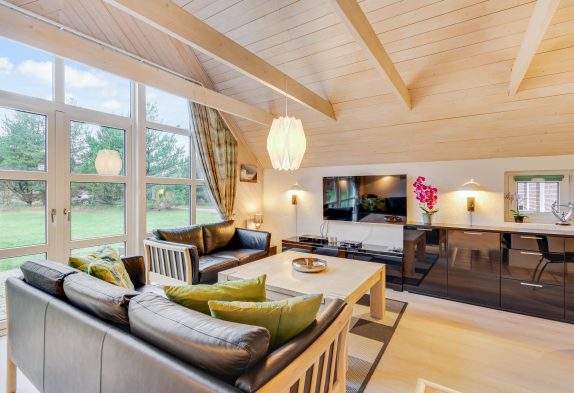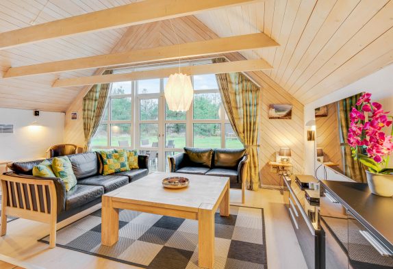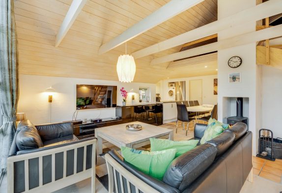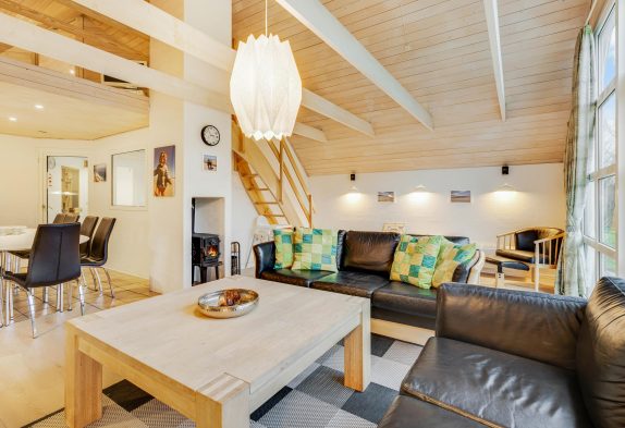 I stuen kan du hygge dig foran den dejlige brændeovn. Der er også en varmepumpe, så du nemt kan få præcis den temperatur i sommerhuset, som du ønsker dig, uanset årstiden.