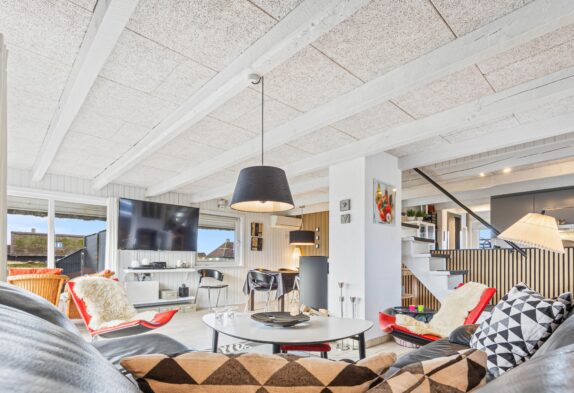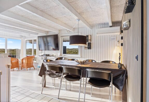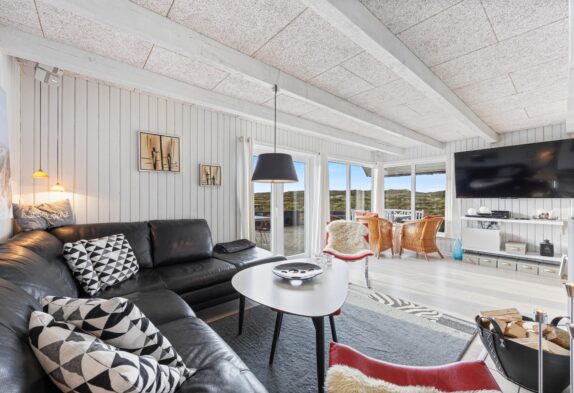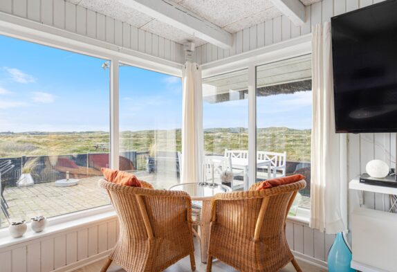 Hvis I kan løsrive jer fra det fantastiske view ud over hede-landskabet og klitterne, kan I slappe af i sofaen med en god bog og en kop kaffe – mens I nyder den knitrende ild i brændeovnen.