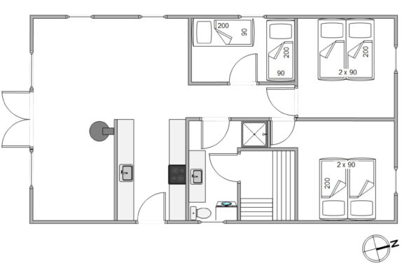 Dette sommerhus i Klegod er lyst og klassisk indrettet. Indretningen inviterer til en god bog i en af husets lænestole eller et brætspil med familien. Sommerhusets køkken, stue og spiseafdeling er samlet i ét stort rum.