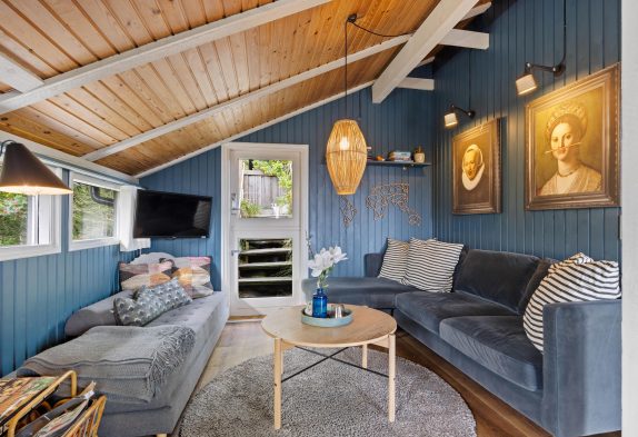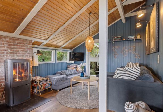 Renoveret 6 personers-sommerhus i skandinavisk stil med brændeovn og Chromecast