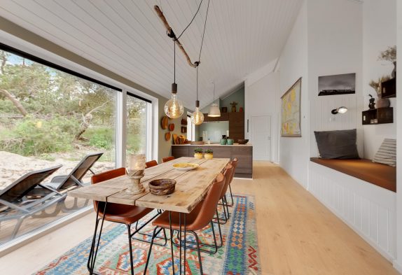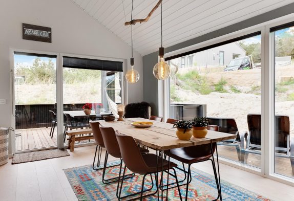 I den nordlige ende af Hvide Sande på Dakotavej 45B, finder I dette virkeligt spændende indrettede sommerhus. Huset er kendt fra TV2-serien ”Sommerdrømme”, og Laura og Isse har her stået for størstedelen af indretningen.