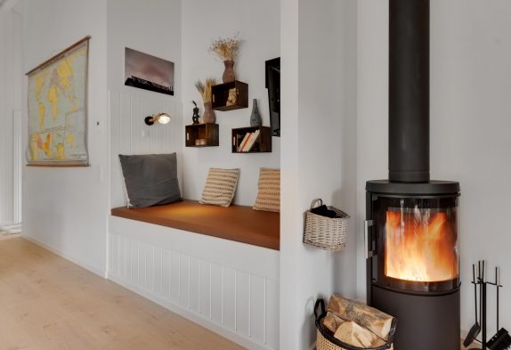 De store vinduespartier bringer naturen og solen helt ind i huset. Nyd hinandens selskab, mens I dyster i diverse familiespil ved spisebordet eller råhygger i alkoven med en god bog imens ilden knitrer i brændeovnen. Perfekt hygge efter en lang dag ved stranden i naturen.