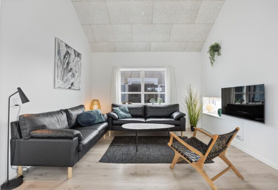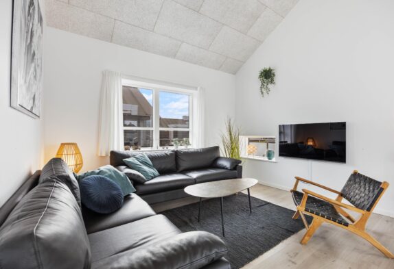 Ferielejligheden på Badevej 5, 1. th. byder på hele 110 stilfulde og rummelige kvadratmeter og god plads op til seks feriegæster. Bemærk dog venligst, at to af de seks sovepladser forefindes på husets hems. Den moderne indretning omfatter alle de praktiske nødvendigheder: Opvaskemaskine i køkkenet, to badeværelser med gulvvarme, vaskemaskine og tørretumbler samt en hurtig og stabil internetforbindelse, så I uden problemer kan streame film og serier på jeres medbragte iPads og computere.