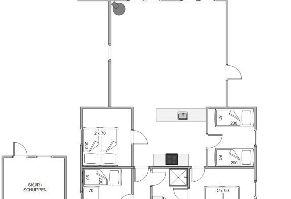 Bemærk at sommerhuset ikke egner sig til gangbesværede, da der er et lille trin ud til badeværelset.