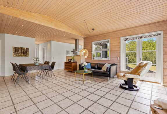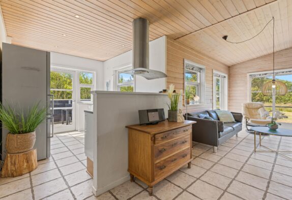 Så snart I træder ind ad døren på Søringen 15, kan I mærke feriefreden sænke sig over jer. Her vil I blive mødt af en lys og venligt indretning med et personligt præg, der skaber en hjemlig atmosfære. Det veludstyrede køkken (med opvaskemaskine) ligger i åben forbindelse med stuen og spiseafdelingen og sætter rammerne for en ferie med samværet i centrum.