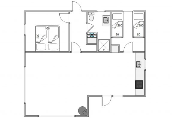 I sommerhuset er der 2 soveværelser, et med en dobbeltseng og et med to enkeltsenge. Sommerhuset har 1 badeværelse med gulvvarme. Derudover har sommerhuset en hyggelig hems, hvor børnene kan lege, mens forældrene i ro og mag kan nyde en god film eller et godt glas vin i stuen.