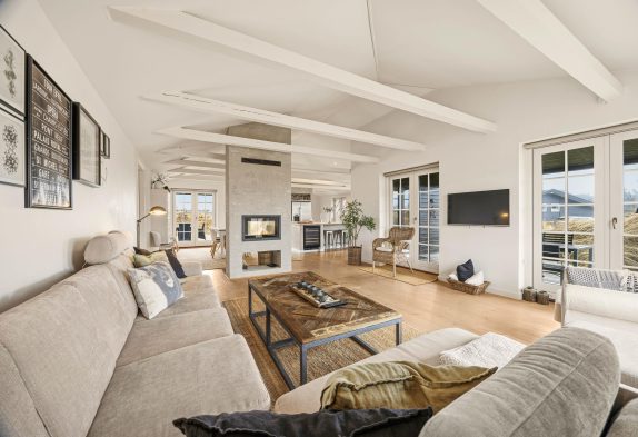 Henne Strand kan det hele. Den lille by emmer af hygge med både indkøbsmuligheder, spisesteder og med en beliggenhed helt ned til Vesterhavet. Du bor lidt tilbagetrukket fra centrum nær hedeområdet med 300 meter til indkøb og 500 meter til havet, så lad bilen stå og nyd en tur til stranden på gåben – spis lidt lækkert på en af byens mange spisesteder inden I søger hjem til huset igen og daser på terrassen.
