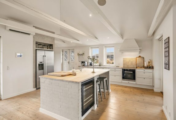 Nyd en iskold drink på terrassen med is fra isterningmaskinen fra det store amerikanske køleskab og sæt dig til rette med en bog i liggestolen – senere, når der skal tændes op i grillen, kan I hente en kølig flaske hvidvin fra husets vinkøler og nyde den sammen med lidt god mad og hyggeligt selskab.
