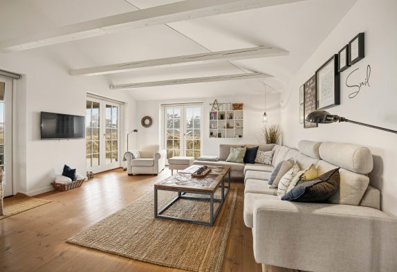 De 4 store soverum med dobbeltsenge befinder sig i hver ende af huset, så 2 soverum deler et af de fine badeværelser. Her er masser af skabsplads og hvert værelse er udstyret med sit eget tv. Et fint bryggers med vaskemaskine og tørretumbler afrunder billedet af en dejlig bekvem og nem ferie. Og skulle I have jeres elbil med, kan den nemt lades op ved hjælp af ladestanderen med type 2 stik.