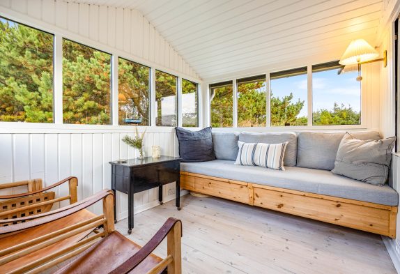 I stuen står brændeovnen, som med sine knitrende flammer altid sørger for, at feriestemningen er i top. I forlængelse af opholdsrummet ligger en hyggelig ekstra stue med masser af vinduer, der inviterer den grønne natur indenfor – det perfekte spot til en friskbrygget kop kaffe og en spændende bog.