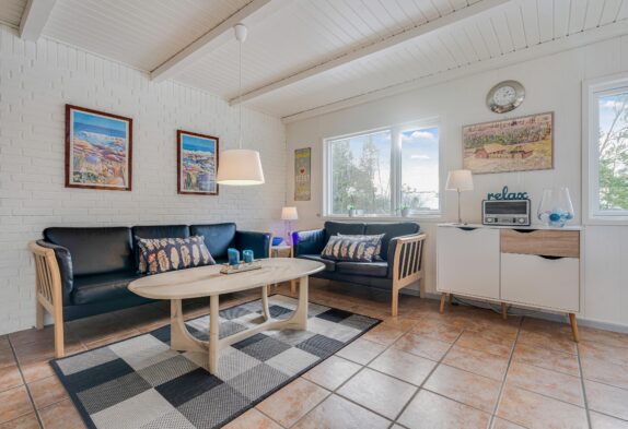 På en stor naturgrund i lukket vænge finder du Karl Postvej 7 omgivet af høje træer. Ferieboligen er den perfekt ramme om en dejlig familieferie, men også hvis man ønsker at rejse to familier sammen, er her både en soveafdeling på 1. sal og i stueplan. Med både bad og gæste-wc, praktiske detaljer som vaskemaskine, tørretumbler og hyggeelementer som sauna, spa og brændeovn er sommerhuset i Blåvand perfekt til ferien med op til 8 personer.