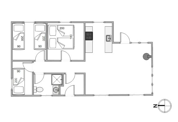 Den åbne indretning i opholdsrummet giver et stort lysindfald i hele rummet gennem det store vinduesparti mod øst. Det ene af de 3 soveværelser er udstyret med en dobbeltseng, det andet med to enkeltsenge og det tredje med en enkeltseng. Her er plads til, at I alle 5 kan få en god nats søvn og samtidig plads til at trække jer tilbage med en god bog.