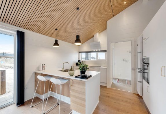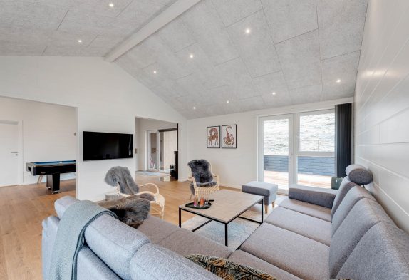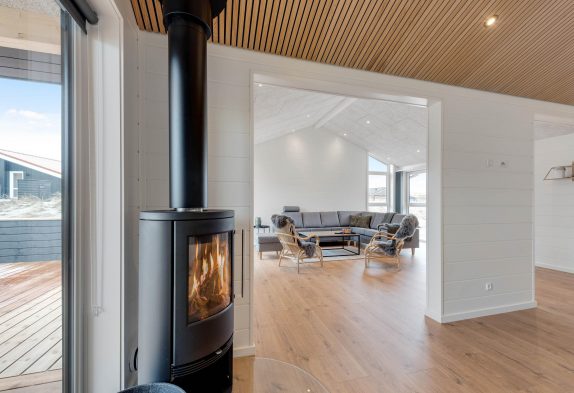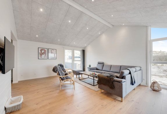 Sommerhuset har en moderne indretning, hvor I kan læne jer tilbage og slappe af i komfortable møbler. Sammen med det gode lysindfald fra de mange vinduer, skaber det en skøn atmosfære.
