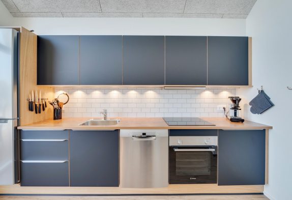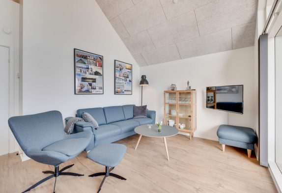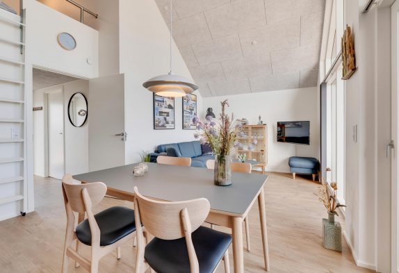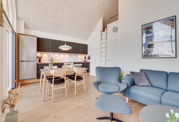 På ferielejlighedens 52 kvadratmeter finder I 1 badeværelse med gulvvarme, 1 soveværelse og et stort opholdsrum med stue og køkken i ét. Desuden er der en hems, hvor 2 af sovepladserne er – et sikkert hit hos børnene. I opholdsrummet kan I uden problemer tilbringe tid sammen, selvom nogle af jer står for madlavningen, mens andre slapper af i sofaerne.