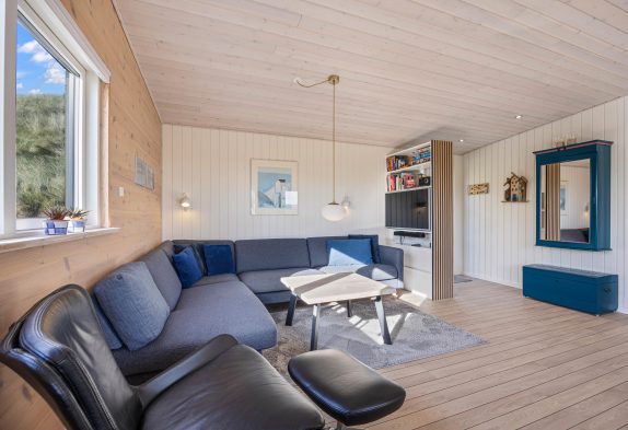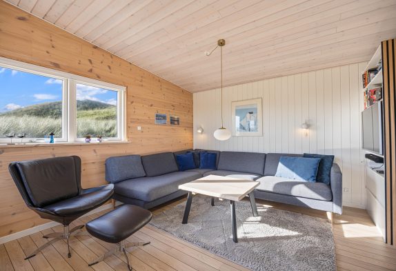 Kun 100 meter fra stranden ligger dette femstjernede sommerhus med plads til 4 personer, der er perfekt til den lille familie eller til parret, der ønsker at holde ferie i skønne og moderne omgivelser tæt på Vesterhavet.