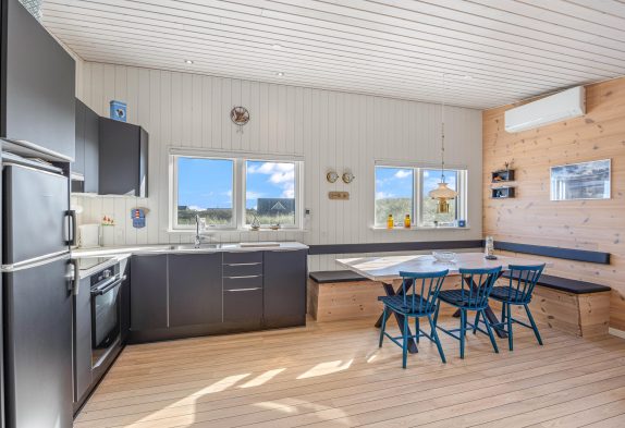 Udstyret i det nybyggede (2020) sommerhus fejler intet. Sommerhuset varmes op af en energivenlig varmepumpe, og med både vaskemaskine og opvaskemaskine kan I virkelig slappe af og bruge ferietiden sammen.