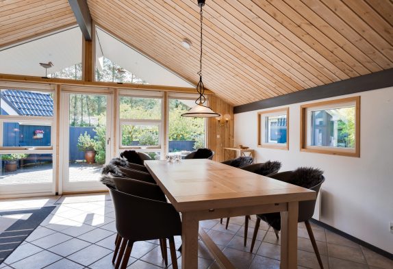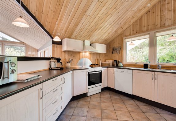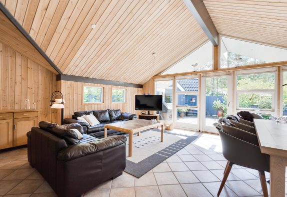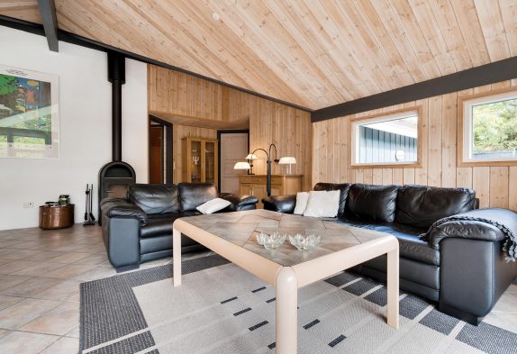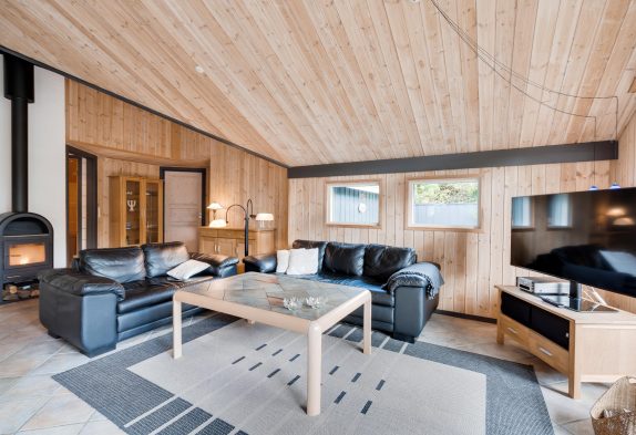I sommerhuset på Nordskrænten 13 kan I samles til mange hyggelige feriestunder i det store opholdsrum. Her kan I være sammen om madlavningen, samles til spilaftener, eller læne jer tilbage i sofaen til en god film. Alt imens har I lyden af brændeovnen i baggrunden, der sørger for gode temperaturer i sommerhuset og giver lidt ekstra til den hyggelige feriestemning.